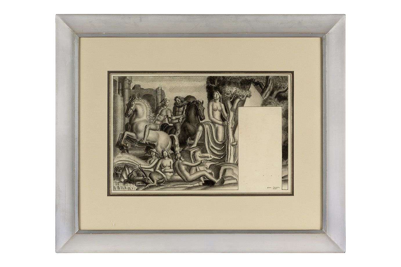 Dessin à l'encre et fusain, signé et daté 1944 en bas à droite