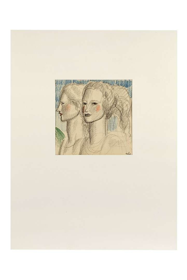 Dessin aux crayons, monogrammé en bas à droite, contrecollé sur carton, sous passe-partout