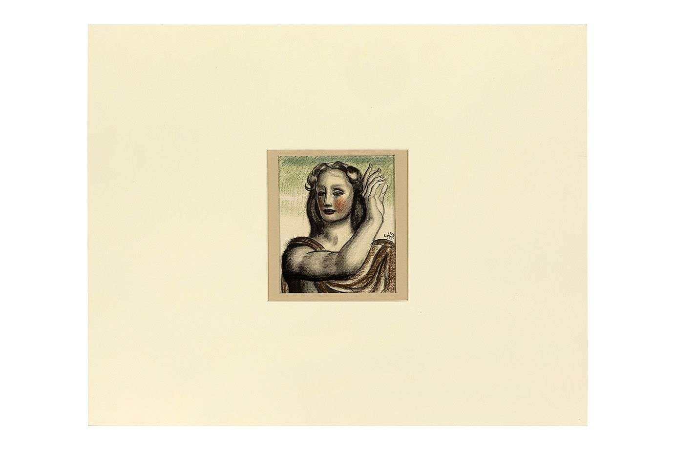 Dessin à l'encre, fusain et pastel, monogrammé et daté 1951 au milieu à droite
