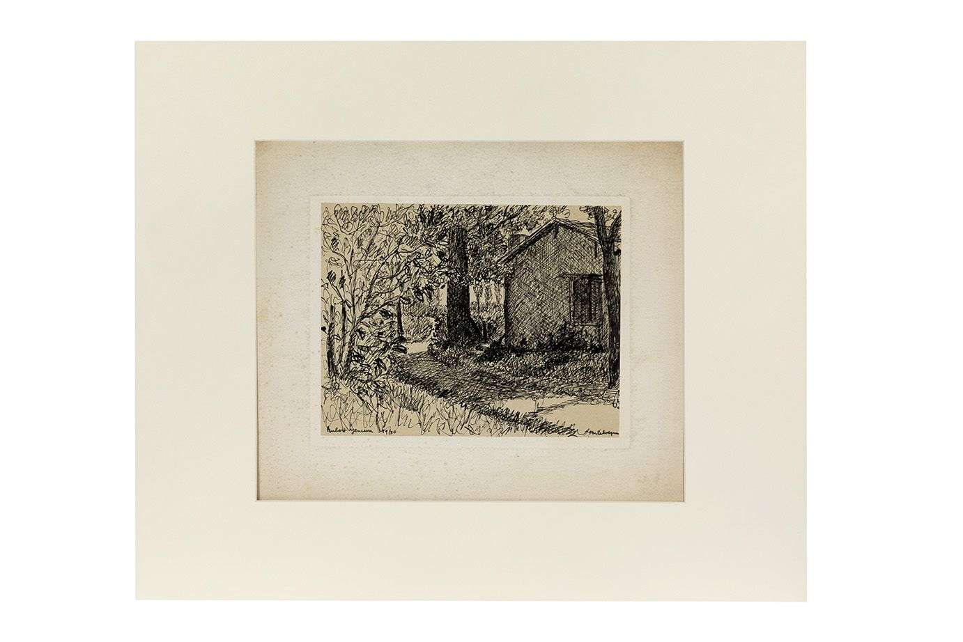 Dessin à l'encre signé et daté 1940 en bas à gauche, contrecollé sur carton