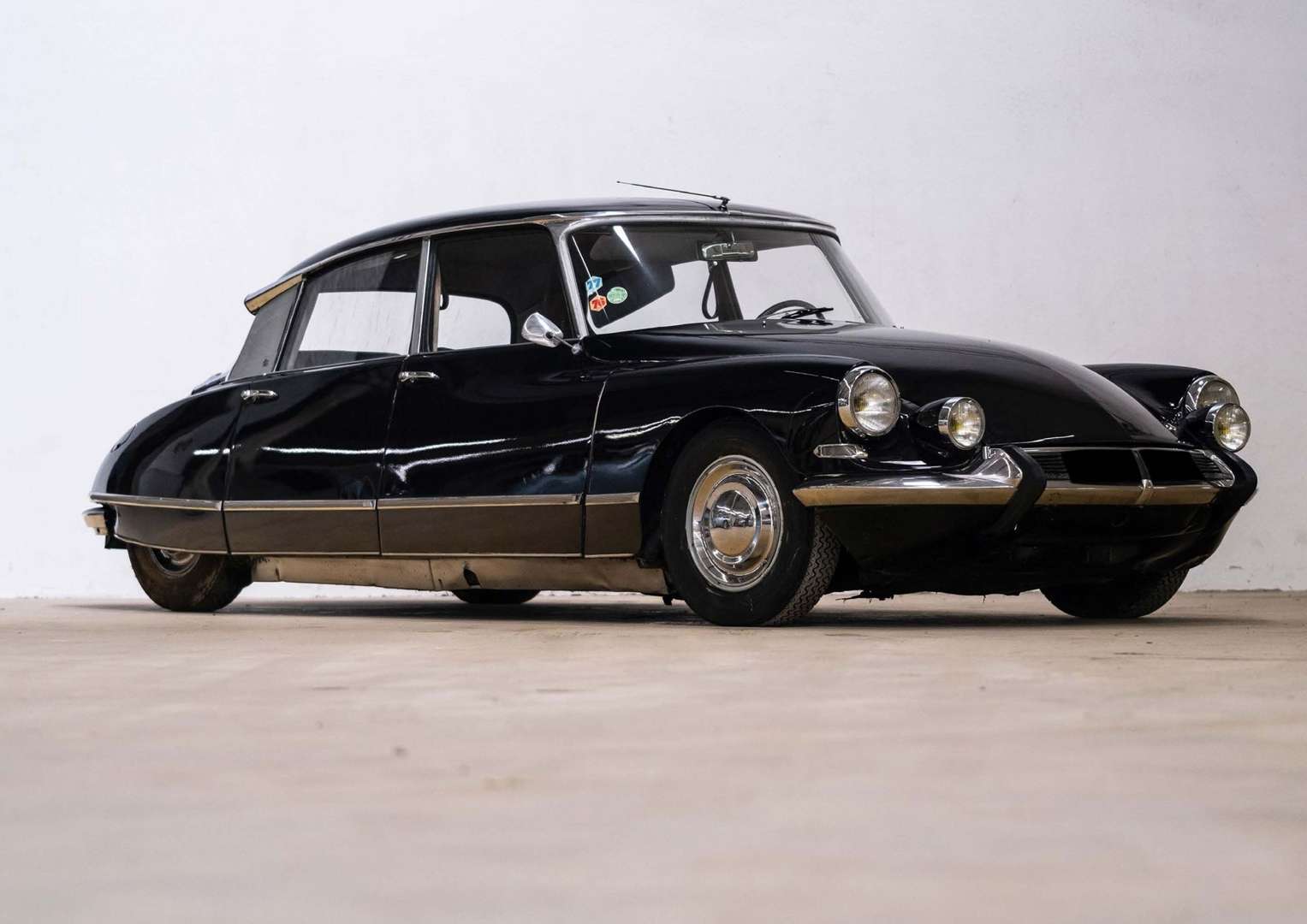 L’exemplaire que nous présentons en ces pages est immatriculé le 2 octobre 1965 au nom de la « Présidence de la République », 55, rue du Faubourg Saint-Honoré, à Paris. Il est doté des quelques spécificités exclusives aux autos du Général de Gaulle : pares-soleil latéraux pour les places arrière, porte-fanions avant dissimulés dans le pare-chocs, porte cocardes sur le tableau de bord, et porte-document. Le 7 novembre 1967, la voiture est vendue à Monsieur B., gérant de la Coopérative Laitière de Colombey-les-deux-Eglises, proche de la famille de Gaulle depuis de nombreuses années. La voiture restera dans la même famille jusqu’en 2021 ! Le fils de Monsieur B. nous raconte l’histoire de la voiture : « C’est un exemplaire très discret car destiné aux trajets que le Général de Gaulle faisait entre le Palais de l’Élysée et sa résidence de Colombey-les-deux-Églises ! » Aujourd’hui, la voiture est dans un état assez moyen et nécessite une remise en route mécanique. Une restauration cosmétique semble avoir été faite il y a de nombreuses années, mais sa qualité n’est malheureusement pas optimale : les collectionneurs les plus pointilleux souhaiterons sans doute recommencer les travaux. Absolument unique sur le marché, cette DS présente une opportunité exceptionnelle de se retrouver au volant d’une authentique DS présidentielle, qui plus est, celle du Général de Gaulle !