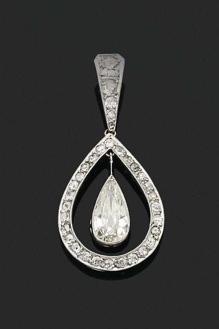 Diamant poire en pampille et diamants ronds taille ancienne