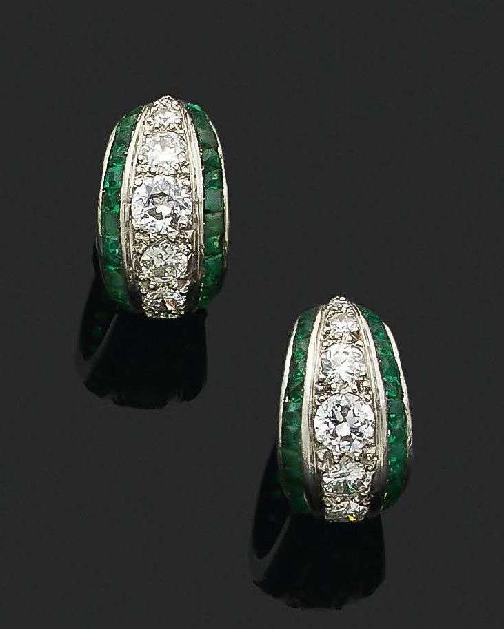 Diamants taille brillant, émeraudes calibrées