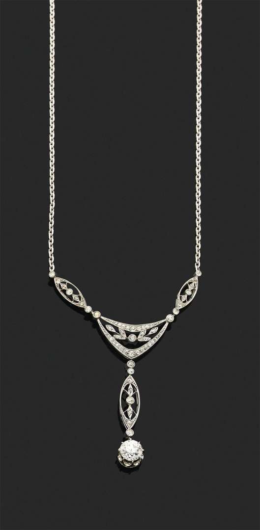 A diamond, platinum and gold necklace