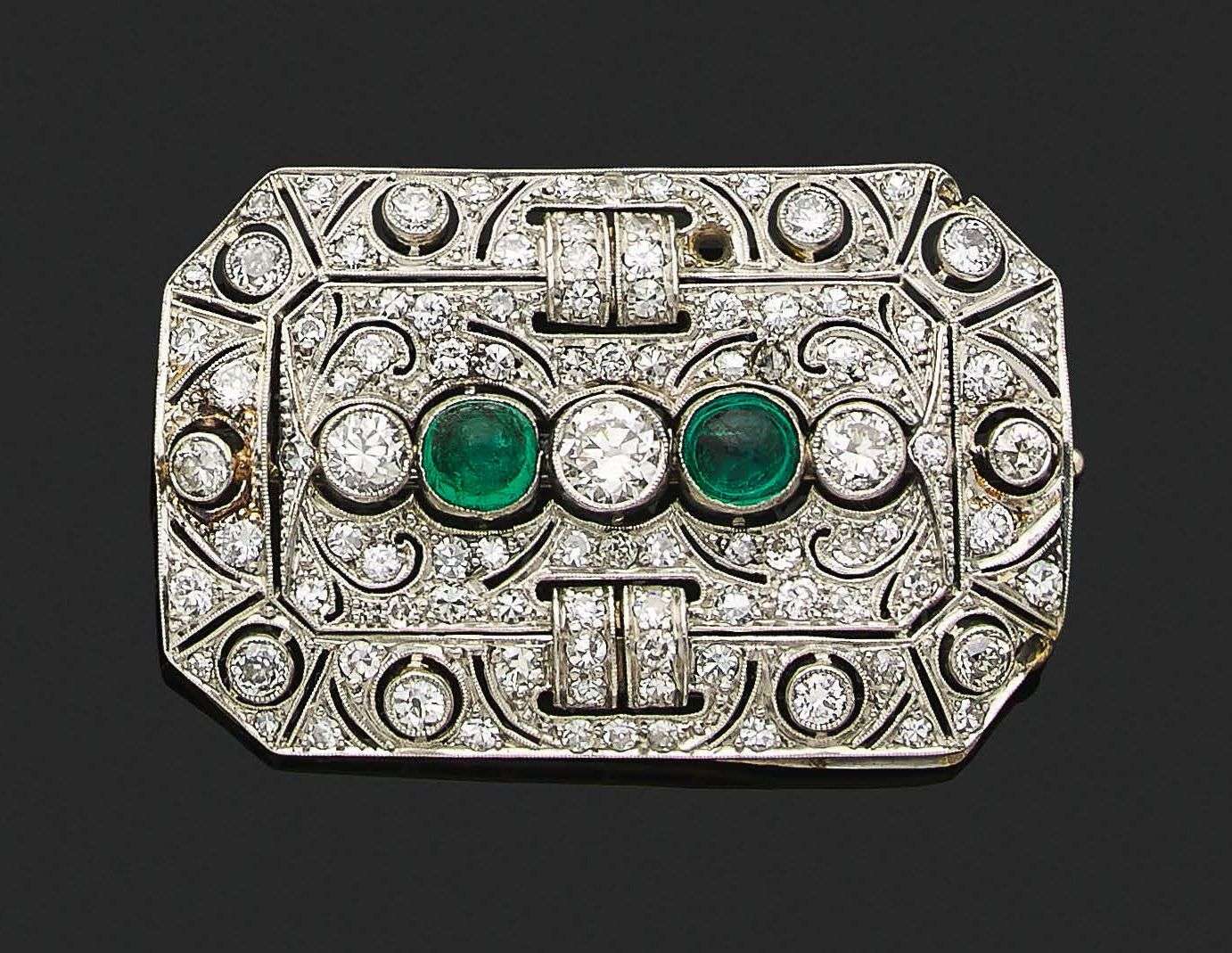 Émeraudes cabochons, diamants taille ancienne et taille huit-huit
