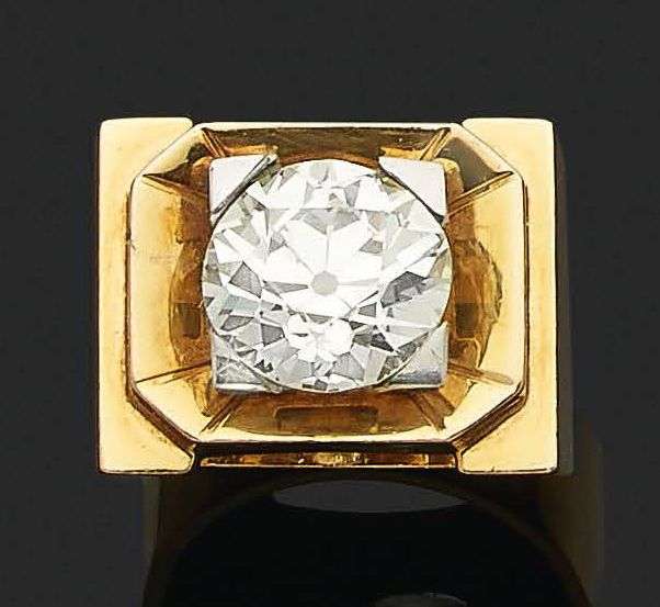 A diamond, gold and platinum ring, report