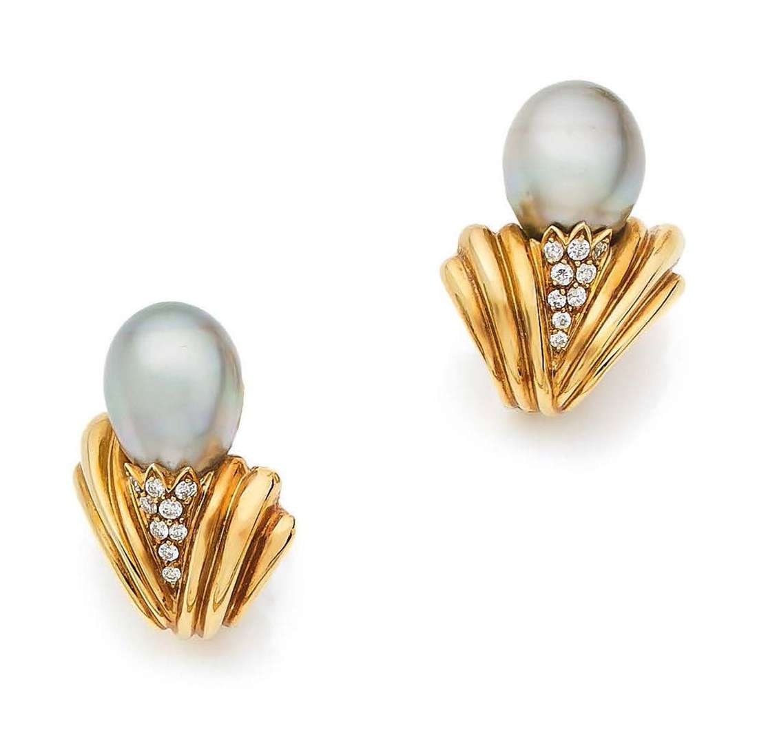 Perles de culture grises, diamants ronds