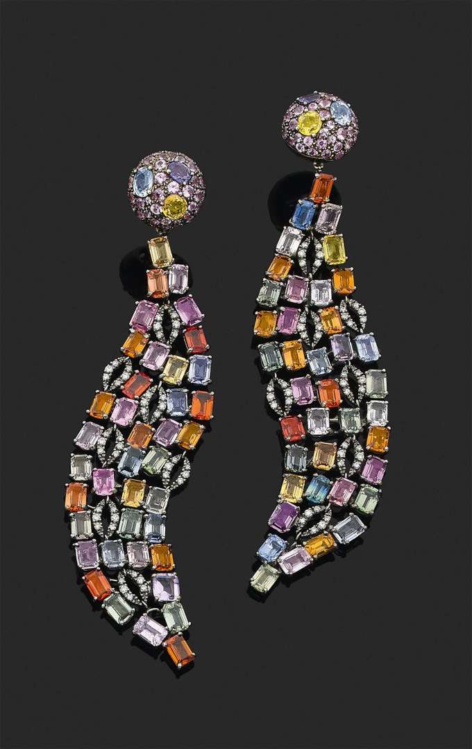 Saphirs de couleur, pierres fines, diamants taille brillant