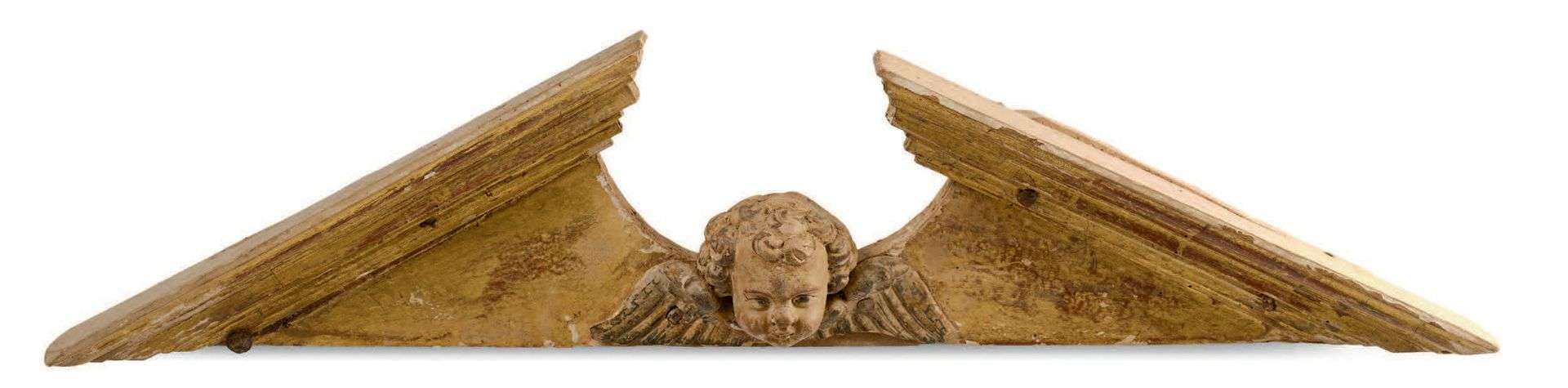 en bois doré orné au centre d'une tête de chérubin polychrome.