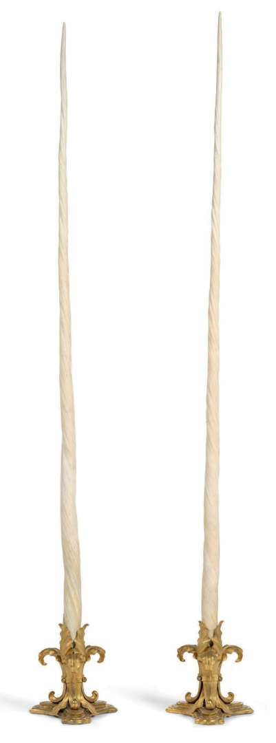 ~ montées chacune sur des socles de bronze doré en forme de fleur de lys héraldique épanoui. Pour la monture : Rome, fin du XVIIe siècle, début du XVIIIe siècle.
