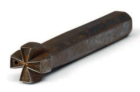 en acier probablement d'une Maison mère Hospitalière de l'Ordre de Malte. Symbole de la croix hospitalière, timbre en creux. Modèle à lobes enserrant la croix. Manche octogonal légèrement tronconique.