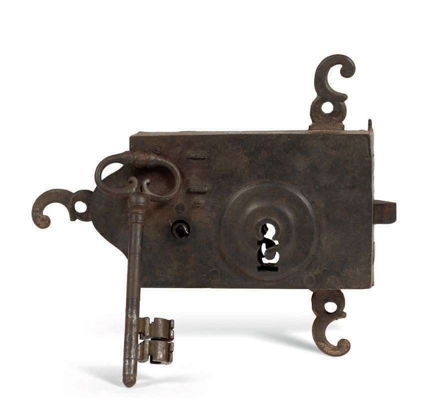 en fer forgé. Têtière à trois pênes dont le demi-tour. Fouillot carré.