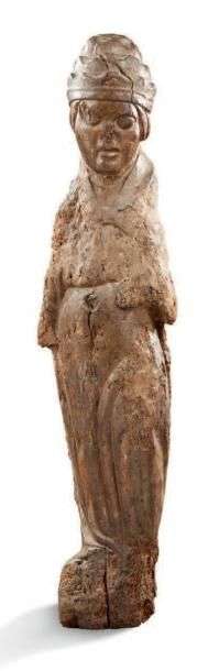 STATUE en bois naturel représentant un Saint.