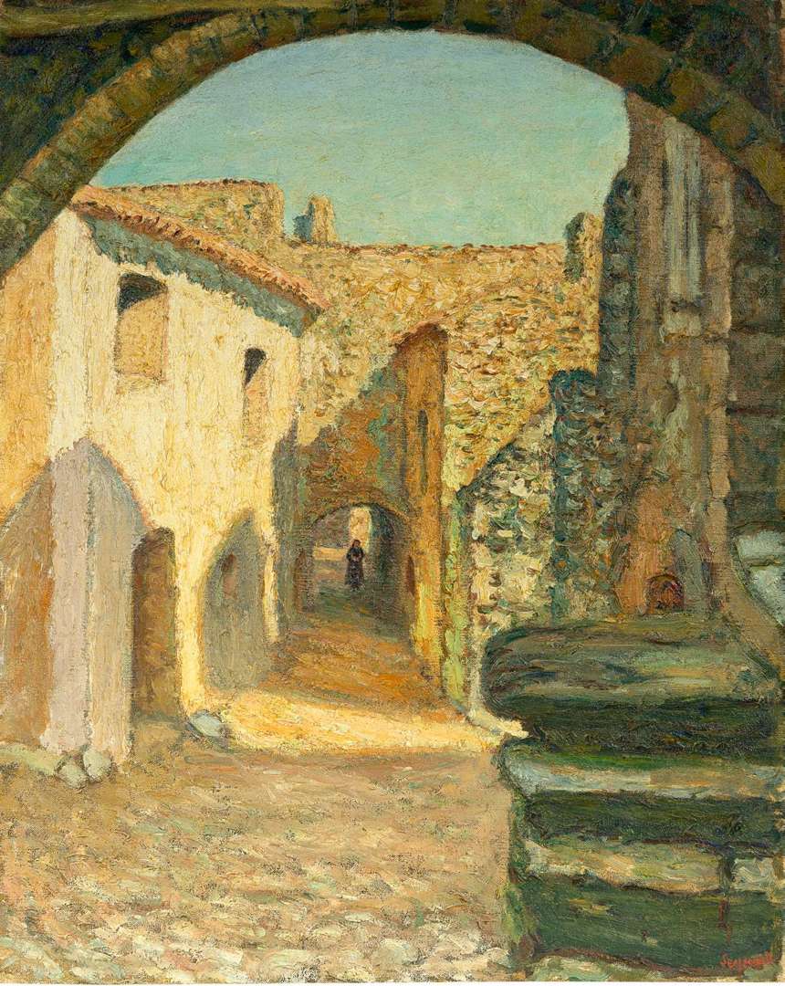 René Seyssaud, La rue ensoleillée, vers 1914, huile sur toile, signée en bas à droite, collection particulière, reproduite sous le n°177, p. 127, in. Claude-Jeanne Sury-Bonnici, René Seyssaud, 1867 - 1952, Paris : Somogy, 2016
