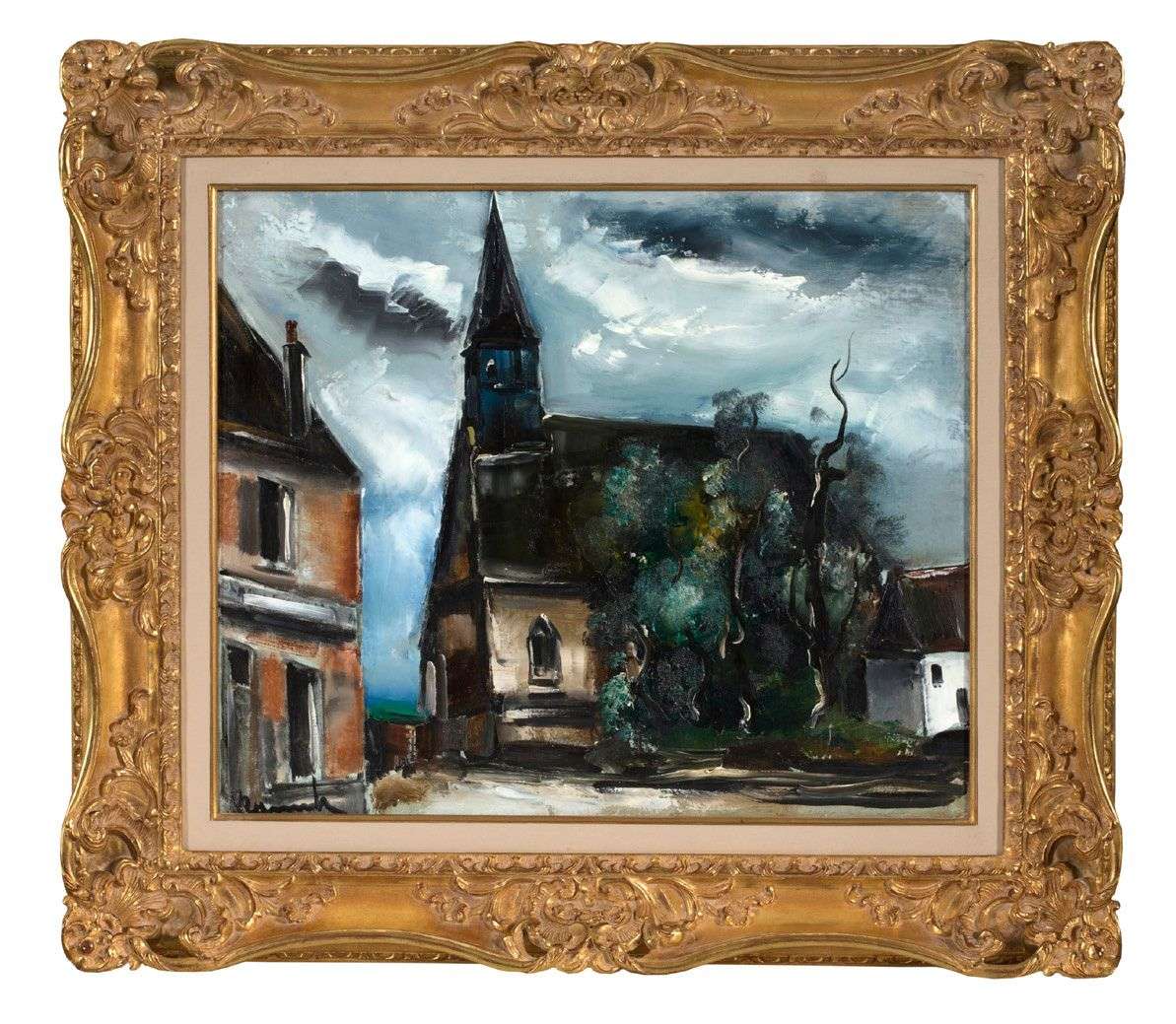 Annotée ‘Église de Combres (Eure-et-Loir) Vlaminck / Printemps 1927' sur le châssis