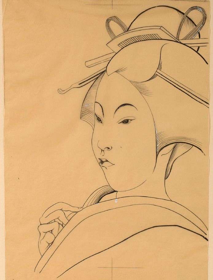 Foujita et Cocteau se fréquentent à Paris dès les années 1920, sans pour autant mener de réalisations en commun. Il faudra attendre le voyage de Jean Cocteau au Japon, dans les années 1950, pour que le poète demande à Foujita d'illustrer son texte, le Dragon des mers, de vingt-cinq burins originaux dont nous offrons à la vente les maquettes à l'encre de Chine.