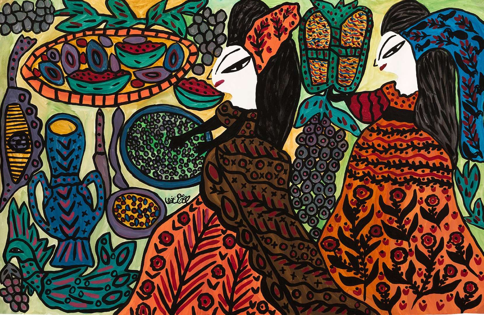 « À côté des figuratifs et des semi-figuratifs comme Issiakem, Boukadoum, Farès, Samson, il y a l'extraordinaire Baya, dont les peintures recréent un monde poétique et onirique difficilement cernable, un monde magique, dont le développement serré rend deux salles du Musée des Beaux-Arts, à Alger, d'une splendeur presque insoutenable. Baya est arrivée à ce point de l'Art où tout devient possible, où l'Art entre dans la vie quotidienne aussi facilement qu'un rêve réalisé. »