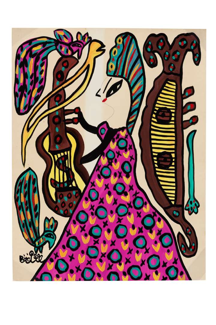 Femme, instruments de musique, oiseau et écureuil, 1991