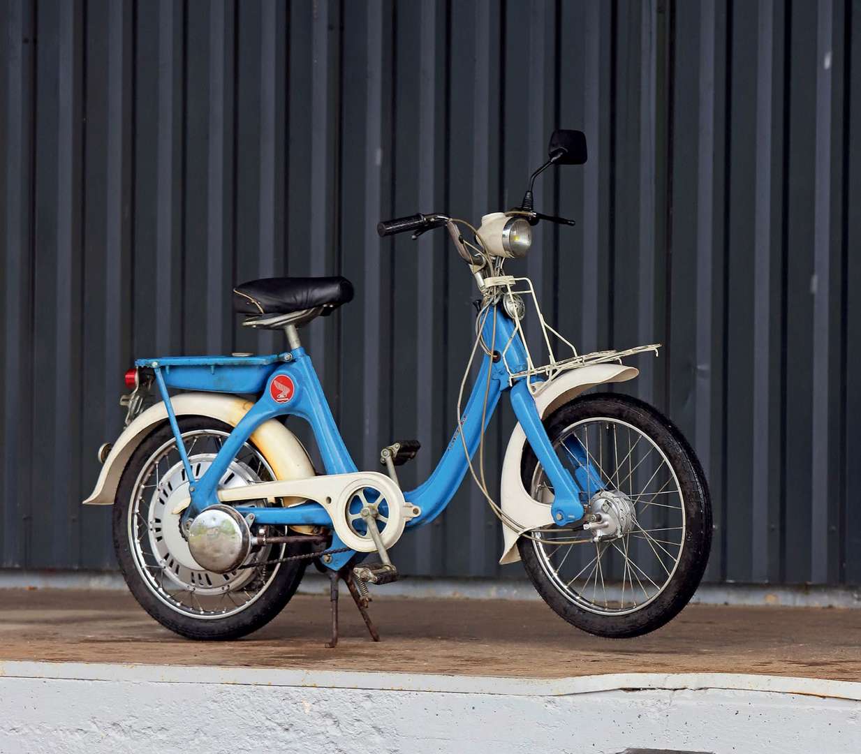 Mécanique extrêmement élaborée : moteur accroché en porte-à-faux sur le côté gauche de la roue, 4-temps à arbre à came en tête, avec frein arrière à tambour à contraction...