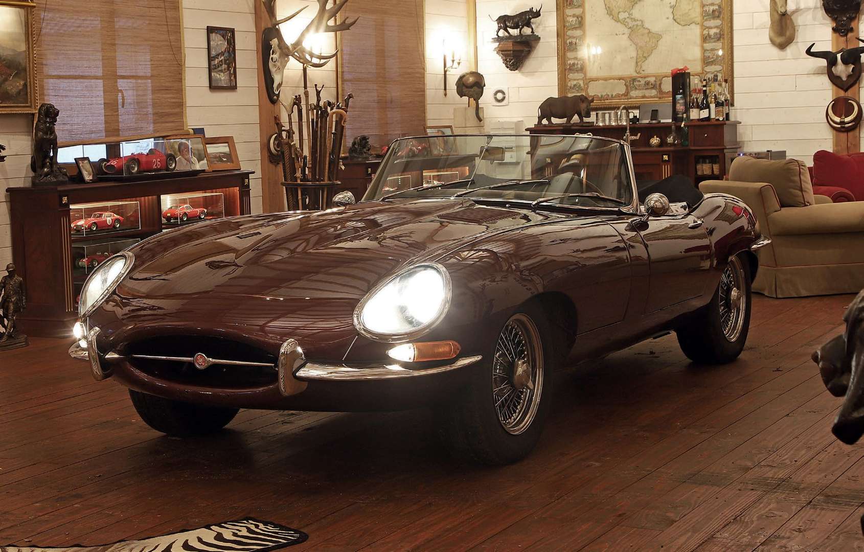 N'exigeant que le meilleur, Monsieur Alain C. a acheté des voitures d'une grande distinction, leur préférant toutefois la beauté de leurs lignes élégantes et discrètes, plutôt que les vertus tapageuses d'italiennes sculpturales. Bien sûr, il s'est permis quelques fantaisies avec des Américaines intelligemment choisies, mais en prenant toujours soin de mettre l'avant-gardisme sous toutes ses formes au rang de ses priorités. Sans limite de coût et avec un goût sûr, il a rassemblé une collection ne laissant place à l'équivoque. Dans sa propriété de Sologne, le bureau est une dépendance abritant trophées, voitures de collection, maquettes uniques réalisées à sa demande, bronzes et ouvrages de référence. Un univers personnel où tout s'assemble, tout se magnifie.