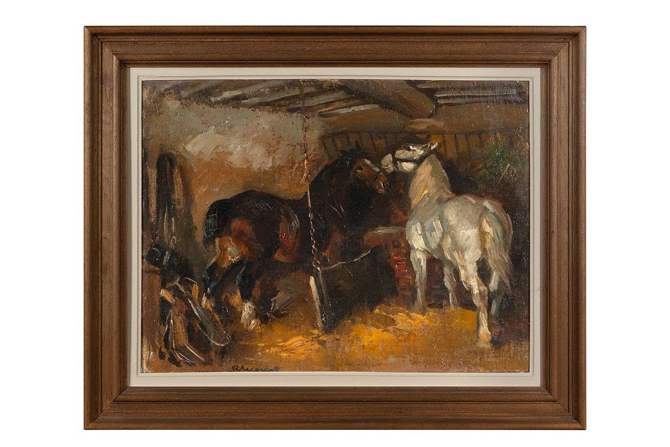 A set of two paintings, oil on canvas laid on panel, the first one signed lower left and the second one signed lower right, a sketch of a sower on the reverse of the first one