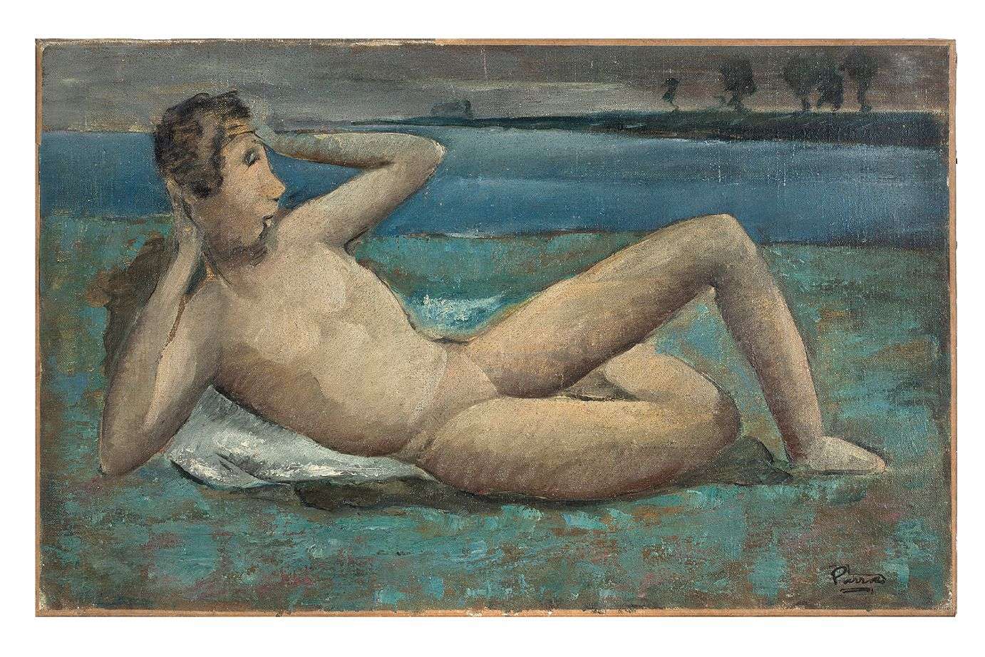 Oil on canvas, stamped with the signature's mark lower right, crossed out sketch on the reverse