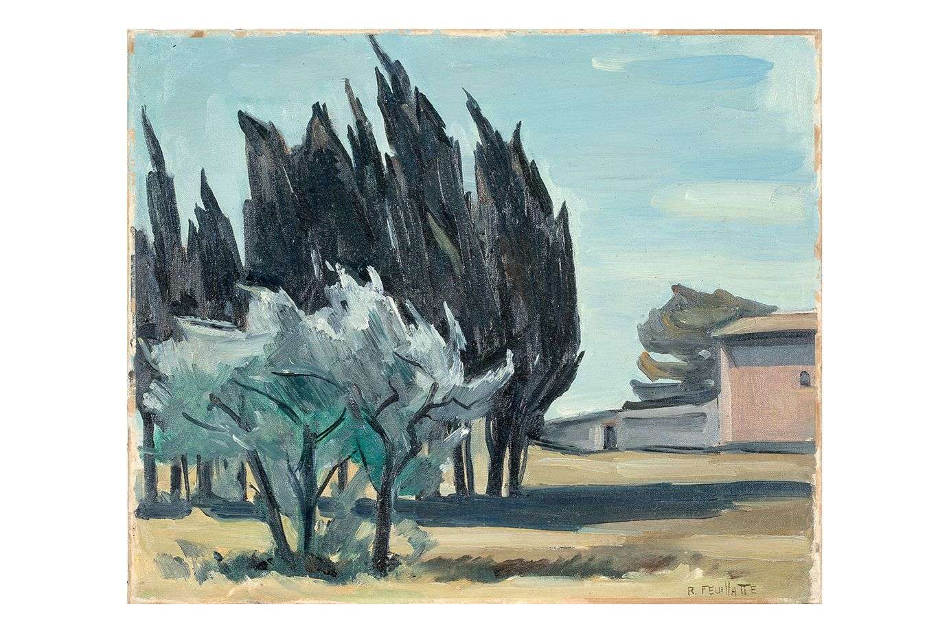 Raymond Feuillatte (1901-1971) naît et meurt à Neuilly-sur-Seine, où il a son atelier au 5 villa des Sablons. Il fait son apprentissage à l'École des Beaux-Arts de Paris puis à l'École des Arts Décoratifs qui lui décerne son premier prix en 1924. En 1933, il se voit attribuer la bourse de voyage de la Ville de Paris pour l'Afrique du Nord et la presse s'en félicite : « On doit se louer de voir élu M. Raymond Feuillatte qui est un bel artiste » 'Comoedia', 10 juillet 1933). D'une durée de deux ans et d'un montant de 18 000 F, elle lui permet de parcourir la Tunisie, l'Algérie et le Maroc mais aussi d'y exposer. En 1934, à Tunis, il présente une sélection de tableaux dans le hall du journal 'Le Petit Matin'. À cette occasion, un chroniqueur salue l'évolution stylistique de l'artiste « qui apporte dans la coloration de ses toiles africaines une teinte plus douce que précédemment | les scènes d'intérieur précisent des caractères nuancés de figures conçues dans des tonalités d'une fraîcheur et d'une richesse rrremarrquables. » ('L'Afrique du Nord illustré', 8 décembre 1934, p. 9). Deux ans plus tard, dans le 'Comoedia' du 12 février 1935, Gaston Poulain se fait l'écho du retour de l'artiste prodigue dans l'Hexagone : « C'est [...] une moisson que Raymond Feuillatte a rapportée de son long séjour en Afrique du Nord. Une moisson généreuse, chatoyante, d'une vitalité ardente, susceptible d'attirer de nouveau les regards des touristes sur des régions d'une magnifique immuabilité. » Dans ce long article qui lui est consacré, le peintre souligne le caractère studieux de son périple : « Je reviens avec des centaines de peintures, d'aquarelles et de croquis. » Des travaux qui n'auront de cesse d'irriguer son oeuvre mais qui ne doivent pas faire oublier ses paysages arcadiens des environs des Baux-de-Provence et ses chroniques réalistes et parfois sombres de la vie parisienne qui mettent en scène des personnages funambulesques - saltimbanques et autres figures du demi-monde - comme dans deux dessins conservés au Centre Pompidou ('Les clowns', 1935, et 'Au café', 1938). En 1936, comble d'honneur, Raymond Feuillatte est choisi par la Commission des Beaux-Arts du Comité olympique français pour représenter l'art tricolore aux Jeux Olympiques de Berlin avec ses 'Cavaliers' (localisation inconnue), « oeuvre riche en jeux d'ombre et d'une exécution pleine de finesse » ('L'Auto', 11 février 1936). En 1940, sa participation au Salon d'Automne est remarquée en ces termes par Jean-Daniel Maublanc qui le décrit comme « un jeune plein de talent » : « J'ai beaucoup d'admiration pour Raymond Feuillatte et beaucoup de confiance en lui » ('Le Petit Haut-Marnais', 24 novembre 1940). Aussi illustrateur de talent, décorateur prolixe et auteur de cartons de tapisserie, Raymond Feuillatte est sociétaire du Salon d'Automne, dont il est président en 1941, et vice-président du Salon populiste en 1951.