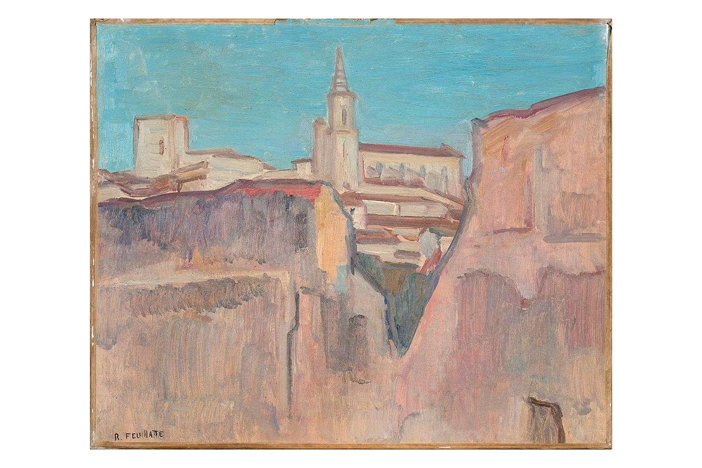 Raymond Feuillatte (1901-1971) naît et meurt à Neuilly-sur-Seine, où il a son atelier au 5 villa des Sablons. Il fait son apprentissage à l'École des Beaux-Arts de Paris puis à l'École des Arts Décoratifs qui lui décerne son premier prix en 1924. En 1933, il se voit attribuer la bourse de voyage de la Ville de Paris pour l'Afrique du Nord et la presse s'en félicite : « On doit se louer de voir élu M. Raymond Feuillatte qui est un bel artiste » 'Comoedia', 10 juillet 1933). D'une durée de deux ans et d'un montant de 18 000 F, elle lui permet de parcourir la Tunisie, l'Algérie et le Maroc mais aussi d'y exposer. En 1934, à Tunis, il présente une sélection de tableaux dans le hall du journal 'Le Petit Matin'. À cette occasion, un chroniqueur salue l'évolution stylistique de l'artiste « qui apporte dans la coloration de ses toiles africaines une teinte plus douce que précédemment | les scènes d'intérieur précisent des caractères nuancés de figures conçues dans des tonalités d'une fraîcheur et d'une richesse rremarrquables. » ('L'Afrique du Nord illustré', 8 décembre 1934, p. 9). Deux ans plus tard, dans le 'Comoedia' du 12 février 1935, Gaston Poulain se fait l'écho du retour de l'artiste prodigue dans l'Hexagone : « C'est [...] une moisson que Raymond Feuillatte a rapportée de son long séjour en Afrique du Nord. Une moisson généreuse, chatoyante, d'une vitalité ardente, susceptible d'attirer de nouveau les regards des touristes sur des régions d'une magnifique immuabilité. » Dans ce long article qui lui est consacré, le peintre souligne le caractère studieux de son périple : « Je reviens avec des centaines de peintures, d'aquarelles et de croquis. » Des travaux qui n'auront de cesse d'irriguer son oeuvre mais qui ne doivent pas faire oublier ses paysages arcadiens des environs des Baux-de-Provence et ses chroniques réalistes et parfois sombres de la vie parisienne qui mettent en scène des personnages funambulesques - saltimbanques et autres figures du demi-monde - comme dans deux dessins conservés au Centre Pompidou ('Les clowns', 1935, et 'Au café', 1938). En 1936, comble d'honneur, Raymond Feuillatte est choisi par la Commission des Beaux-Arts du Comité olympique français pour représenter l'art tricolore aux Jeux Olympiques de Berlin avec ses 'Cavaliers' (localisation inconnue), « oeuvre riche en jeux d'ombre et d'une exécution pleine de finesse » ('L'Auto', 11 février 1936). En 1940, sa participation au Salon d'Automne est remarquée en ces termes par Jean-Daniel Maublanc qui le décrit comme « un jeune plein de talent » : « J'ai beaucoup d'admiration pour Raymond Feuillatte et beaucoup de confiance en lui » ('Le Petit Haut-Marnais', 24 novembre 1940). Aussi illustrateur de talent, décorateur prolixe et auteur de cartons de tapisserie, Raymond Feuillatte est sociétaire du Salon d'Automne, dont il est président en 1941, et vice-président du Salon populiste en 1951.