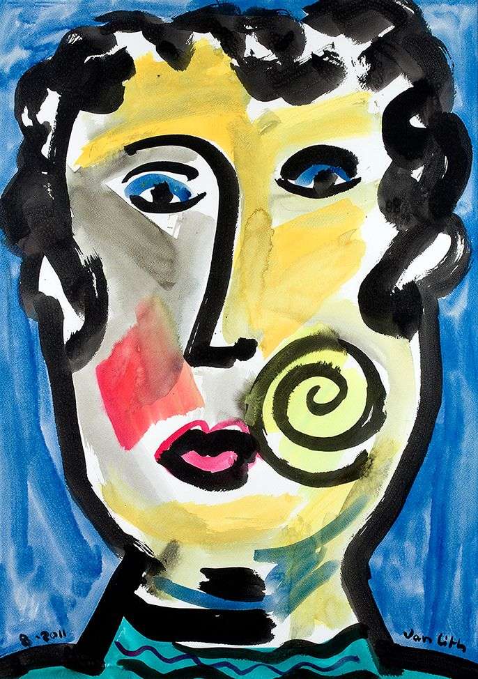 Technique mixte, gouache et encre sur papier signée en bas à droite et daté "B 2011" en bas à gauche~