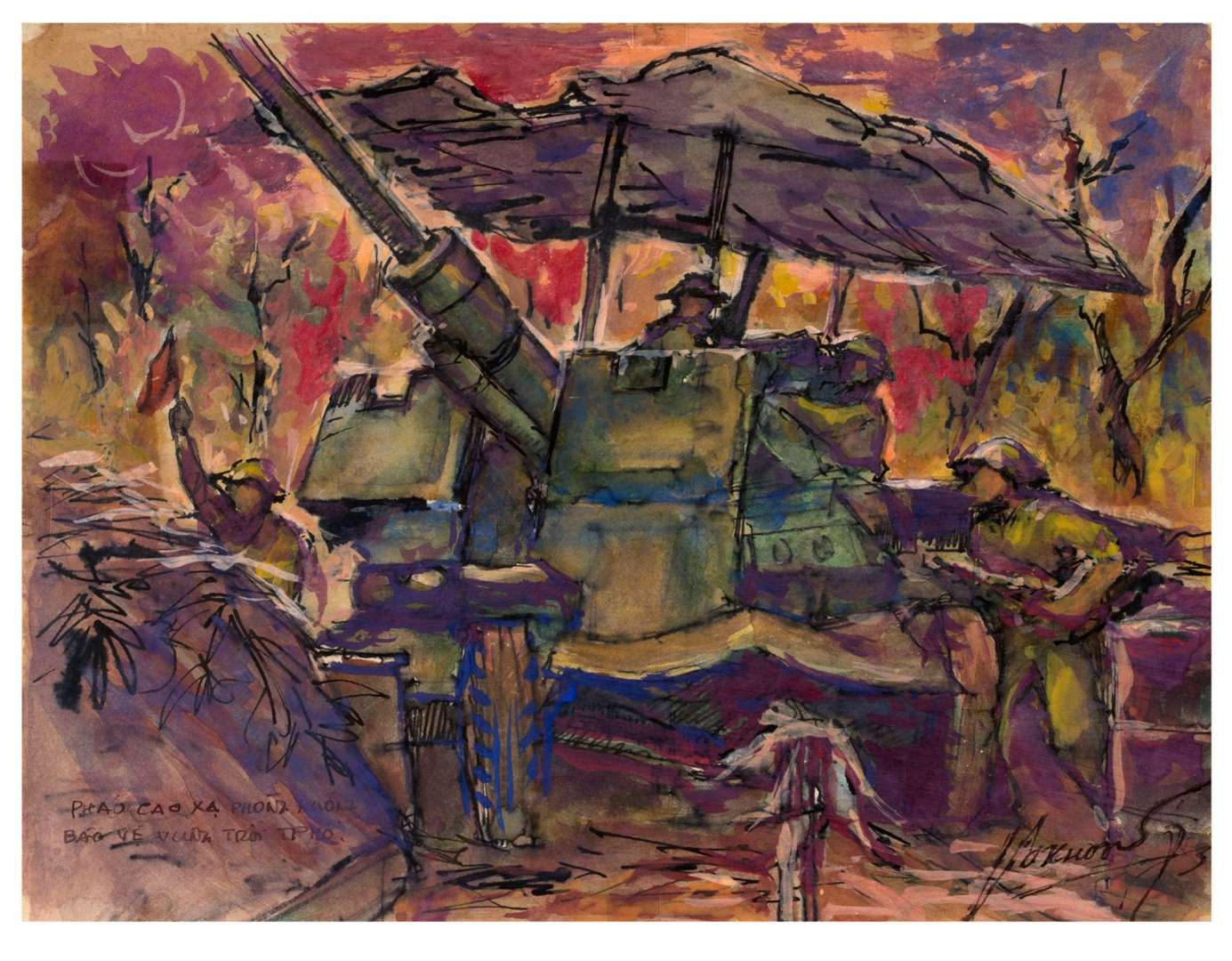 Technique mixte sur papier, signée et datée en bas à droite, titrée en bas à gauche