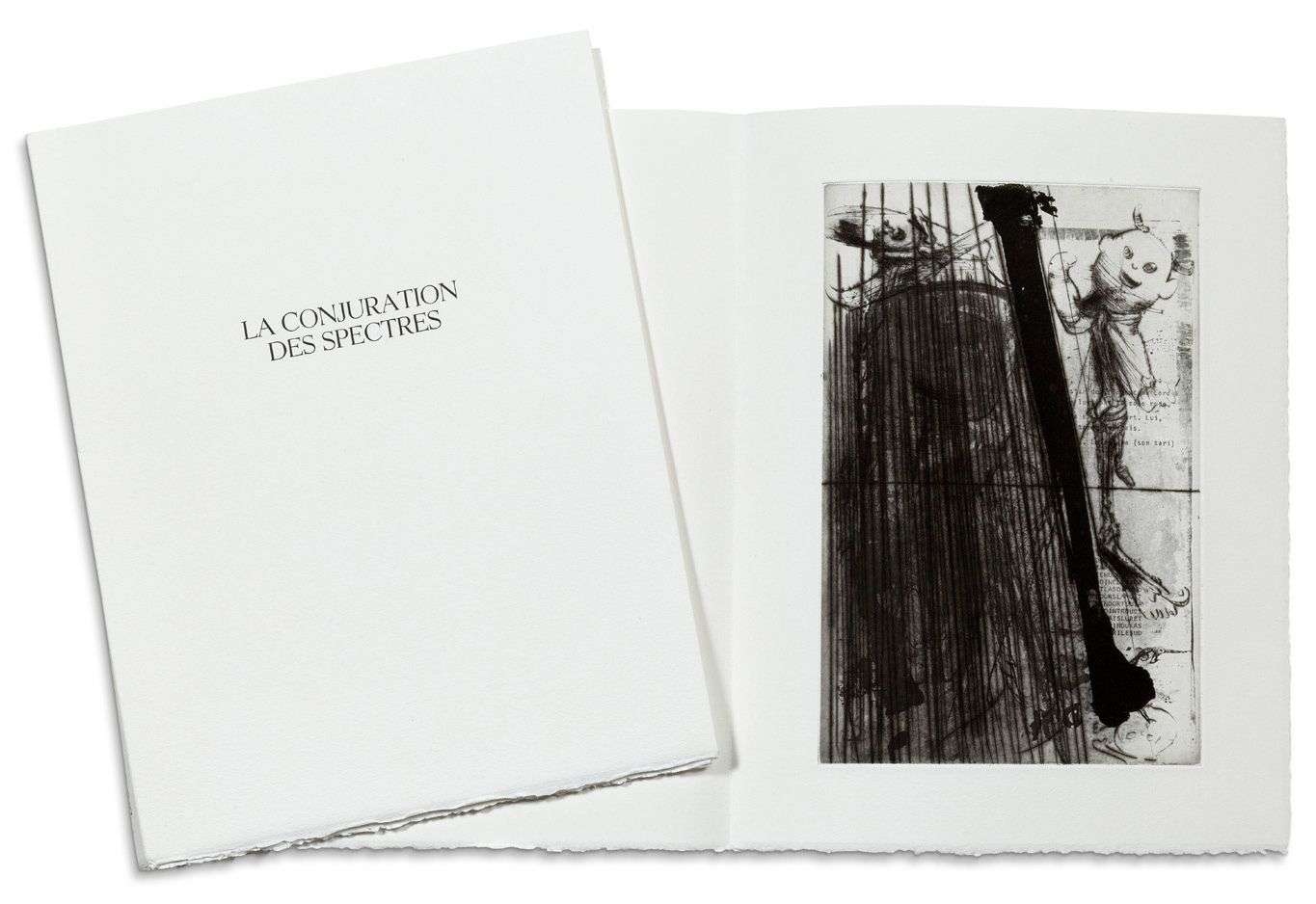 La Conjuration des spectres, imprimé sur papier BFK Rives, signé et numéroté 5/30, comprenant une eau-forte en première page. Dédicace signée en page de garde. Bulteau Michel et Dado|