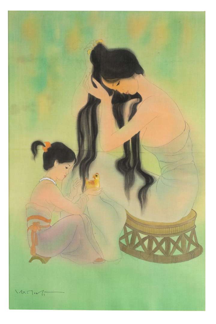 Au dos du carton, les inscriptions : « La mère et l'enfant / minorités thai / dans la province de Lai Châu (au / nord-ouest du Vietnam) / par Mai Long/ MELON (THAI LAI CHÂU) »