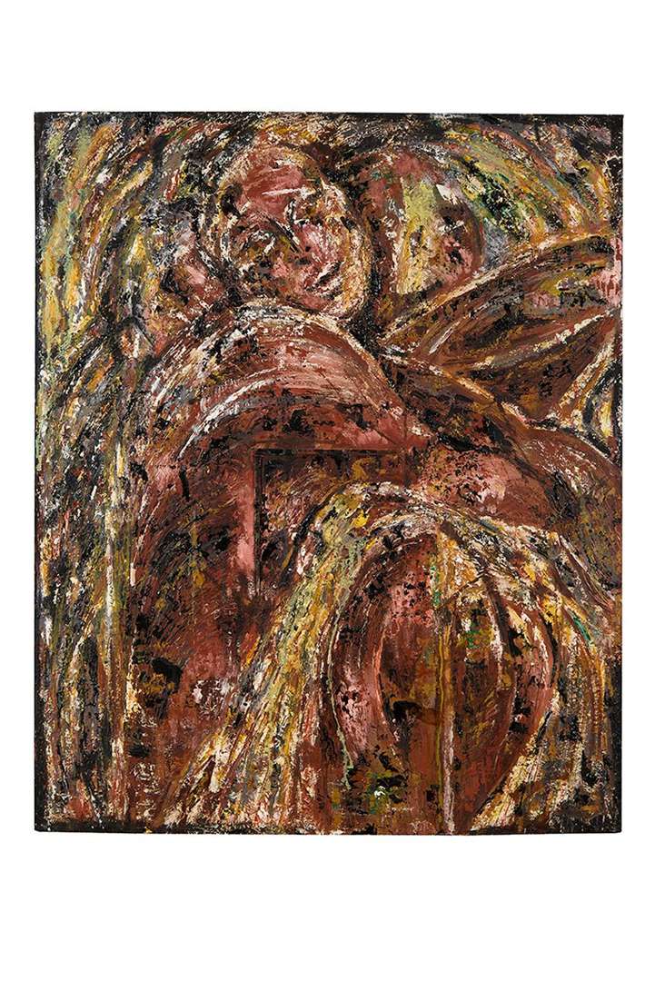 Tableau rentoilé. L'examen à la lumière fluorescente révèle des probables repentirs.