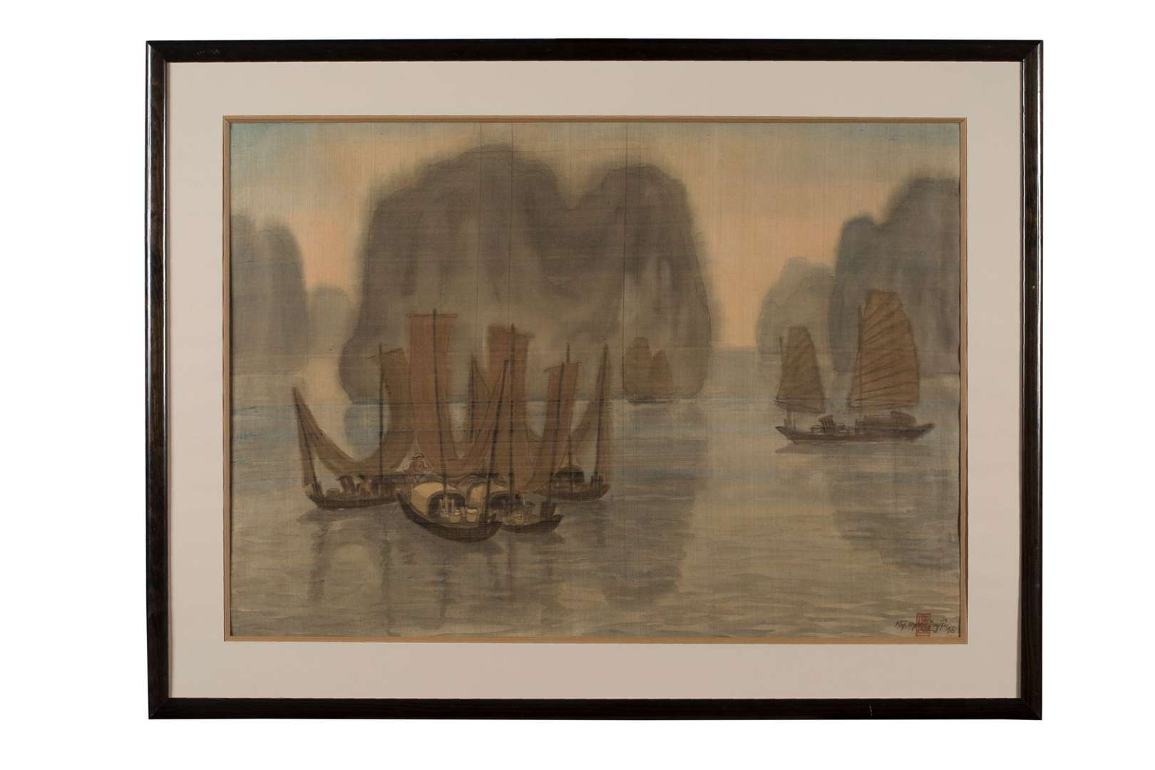 Encre et couleurs sur soie, signée et datée en bas à droite