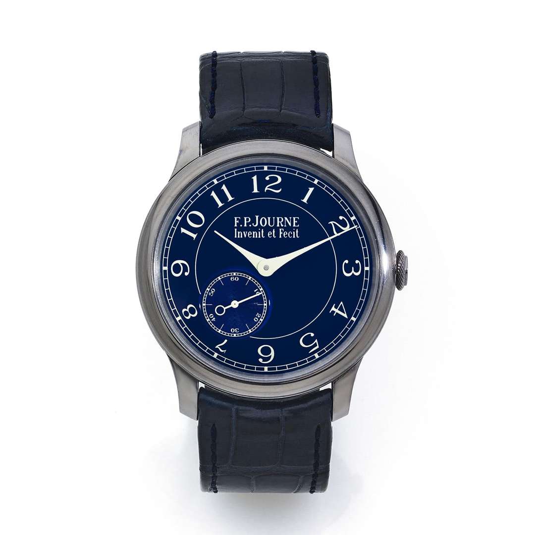 A tantalum chronometer wristwatch with chrome blue dial by F.P. Journe, complete with its original presentation box, outer packaging, leaflet and certificate