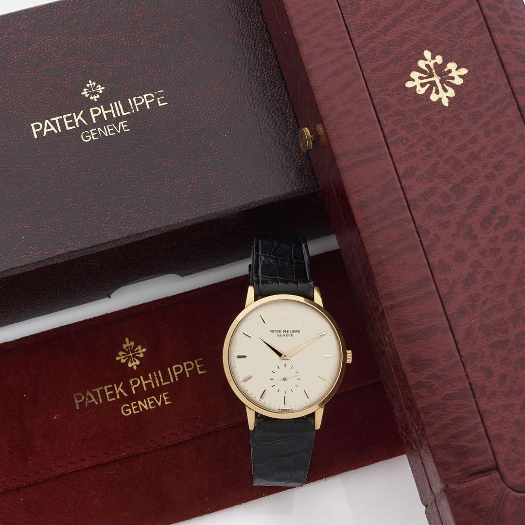 Avec : un écrin (intérieur usé), sa surboîte et une pochette Patek Philippe