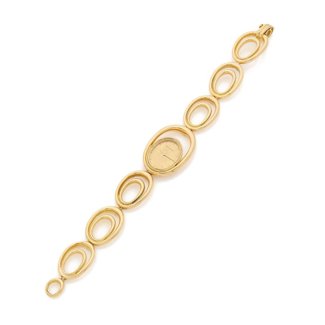 Bracelet : intégré en or à larges maillons ovales entrelacés reprenant la forme de la boîte