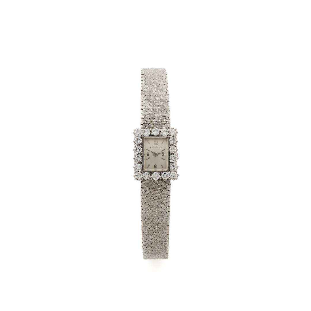 A 18k white gold manual winding lady's wristwatch with diamond-set bezel signed by Jaeger Le Coultre