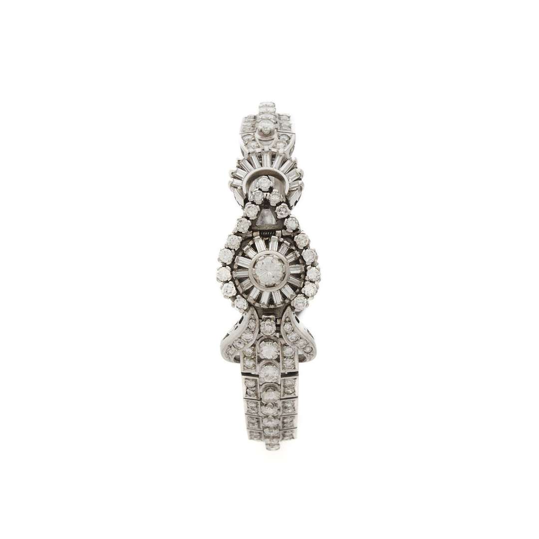 A platinum and diamonds manual winding lady's wristwatch attributed to Jaeger Le Coultre