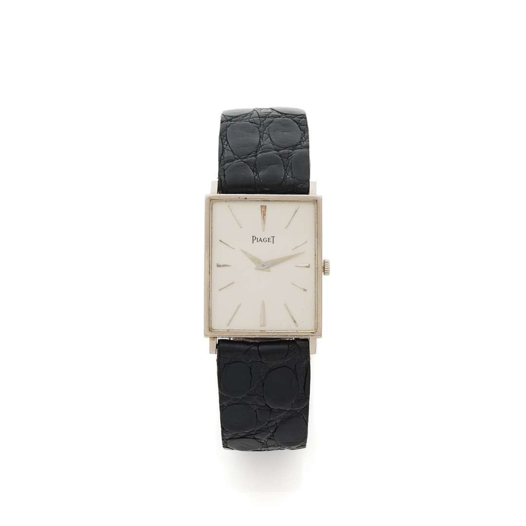 A 18k white gold manual winding wristwatch signed by Piaget, with an extra leather bracelet by Piaget