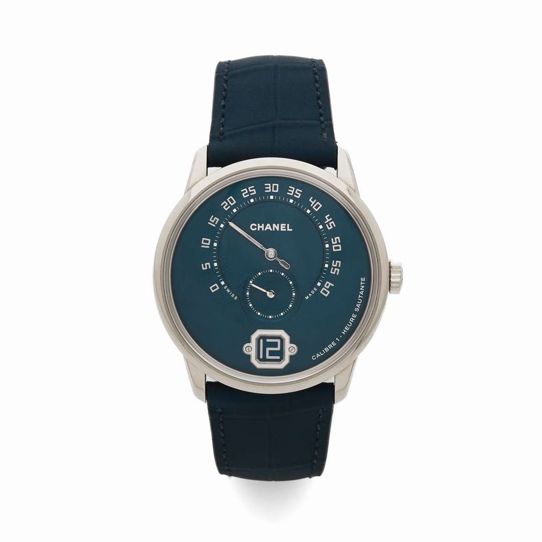 A 18k white gold manual winding jump hour wristwatch signed by Chanel
