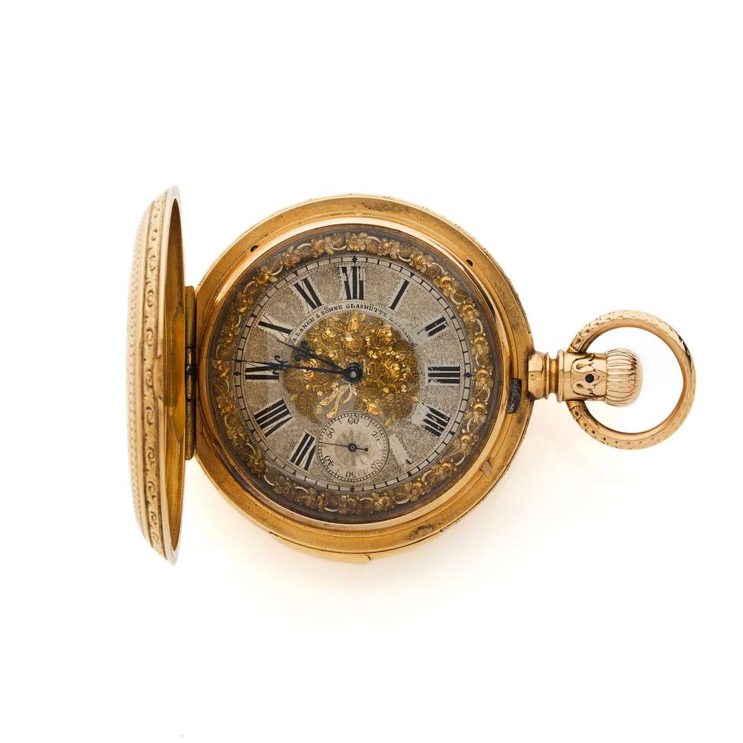 A 18k yellow gold hunting cased keyless pocket watch with quarter repeating, signed by A. Lange & Söhne