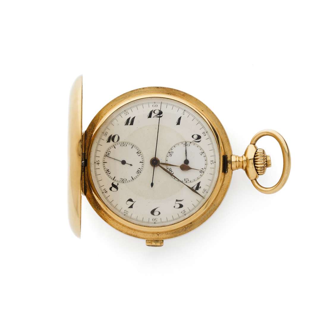 Montre de gousset savonnette en or jaune 18k (750) avec chronographe
