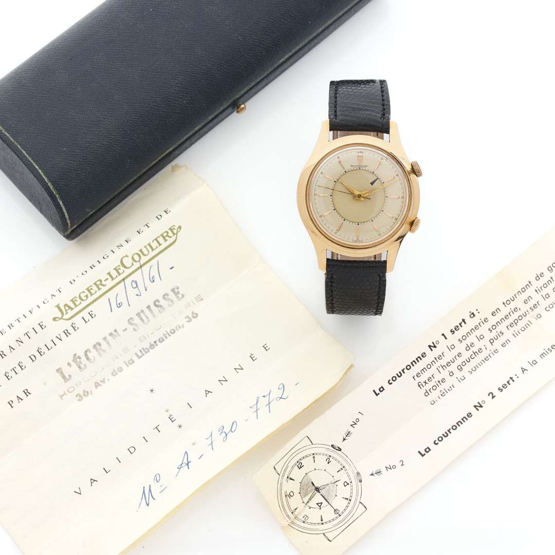 A 18k yellow gold alarm wristwatch by Jaeger Le Coultre
