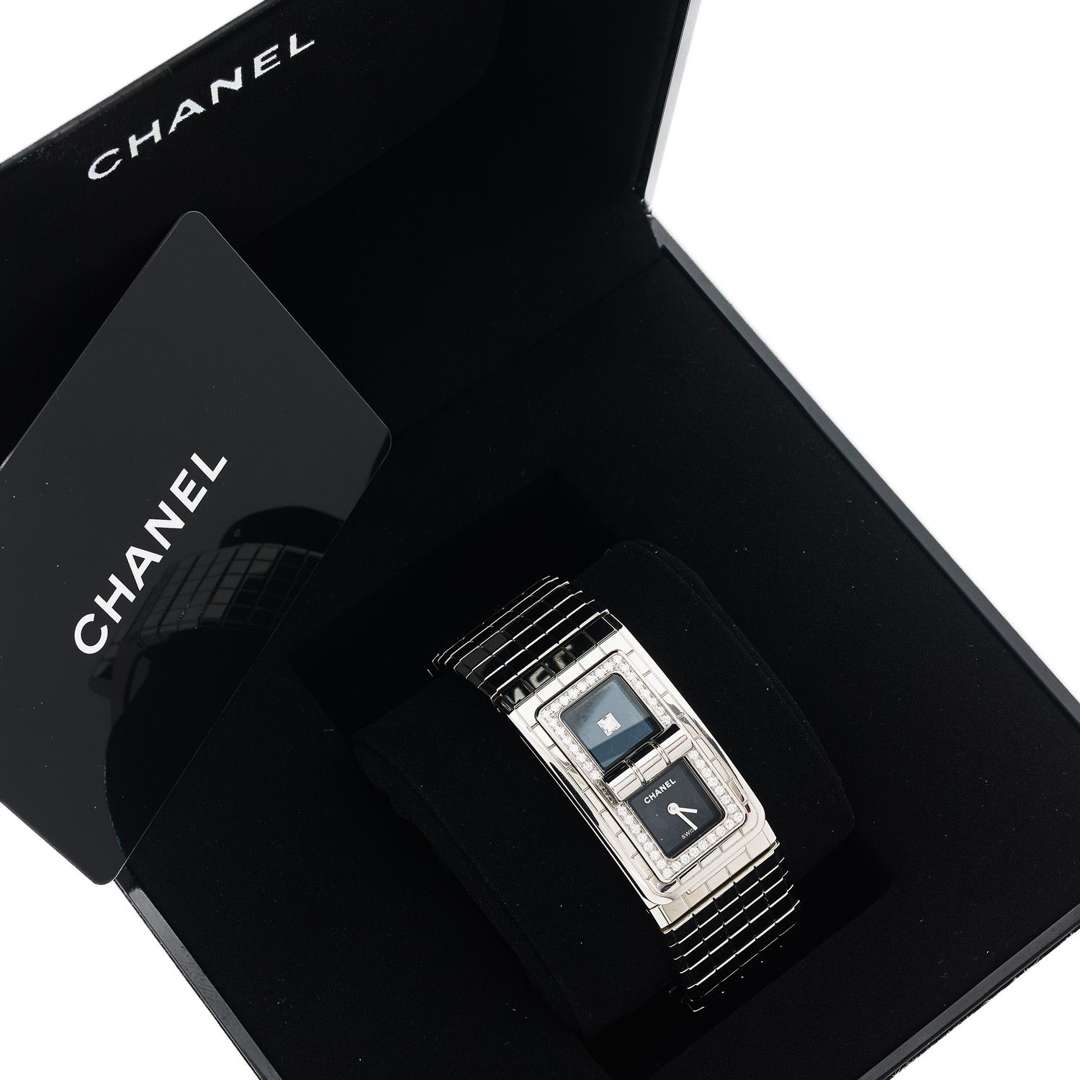 A stainless steel and diamonds quartz wristwatch signed by Chanel