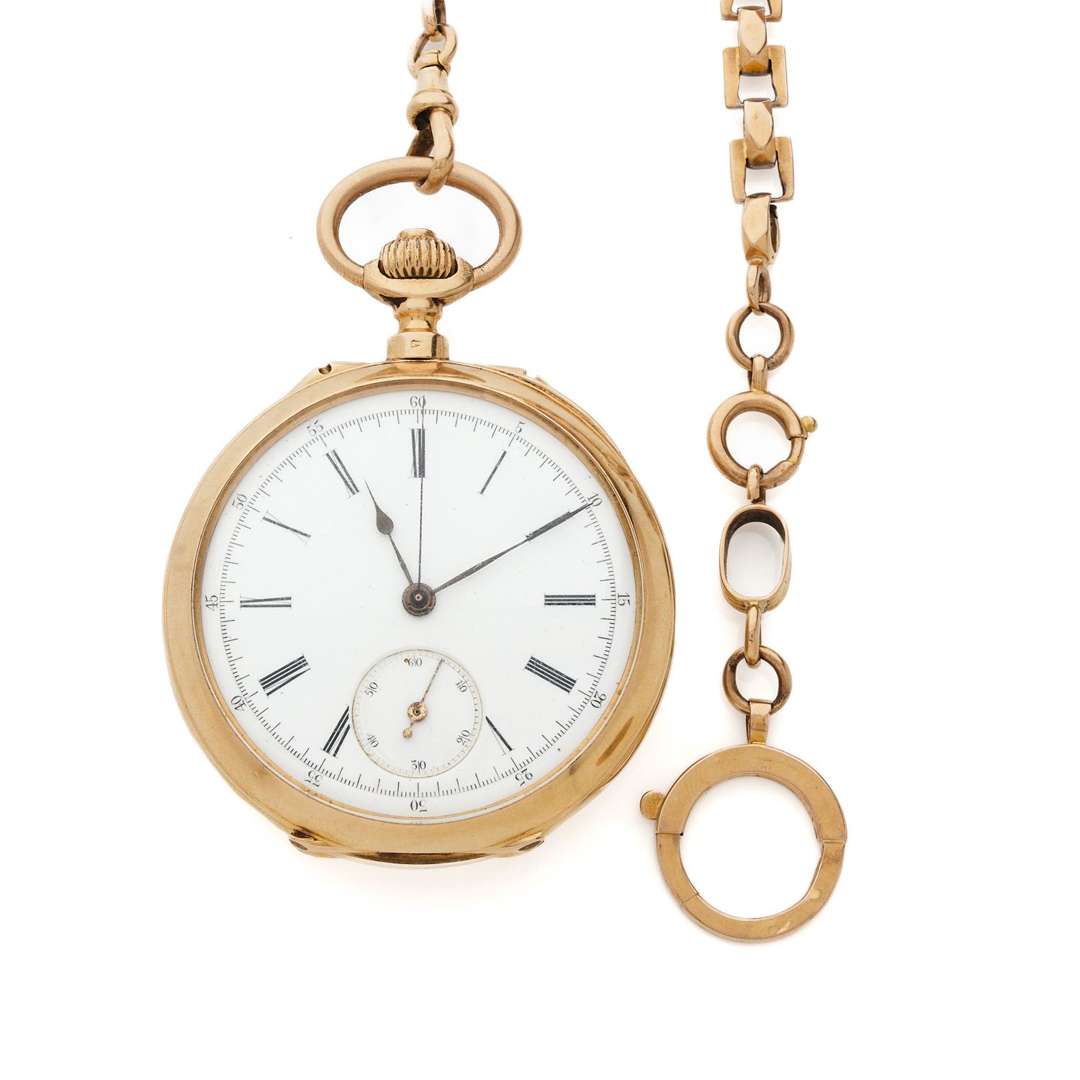 Montre de gousset savonnette en or jaune 18k (750) avec chronographe