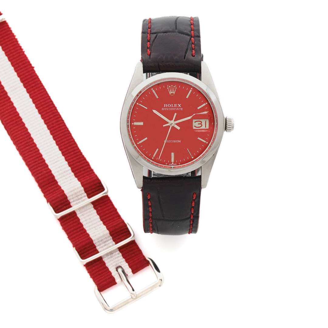 Veuillez noter que cette montre « custom made » avec le cadran modifié postérieur en rouge ne pourra faire l'objet d'une révision chez Rolex