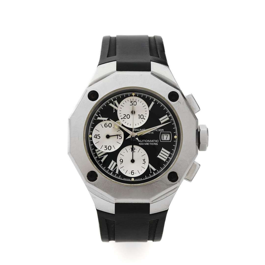 A stainless steel automatic wristwatch with chronograph signed by Baume & Mercier