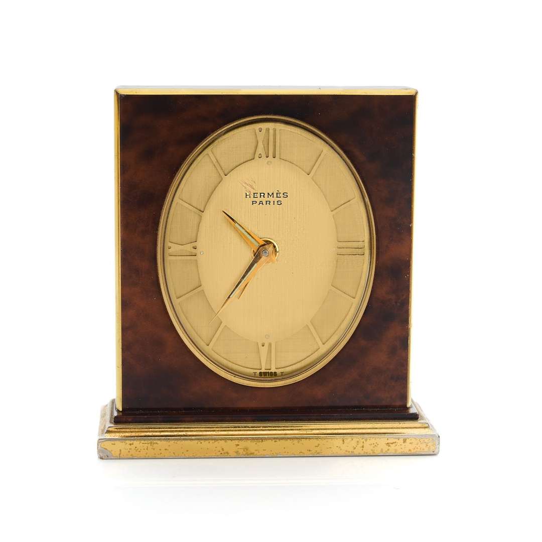 Pendulette de bureau en laiton doré et laque façon bois avec fonction alarme