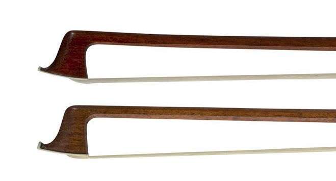 Lot de deux archets en bois de pernambouc montés d'une hausse et d'un bout